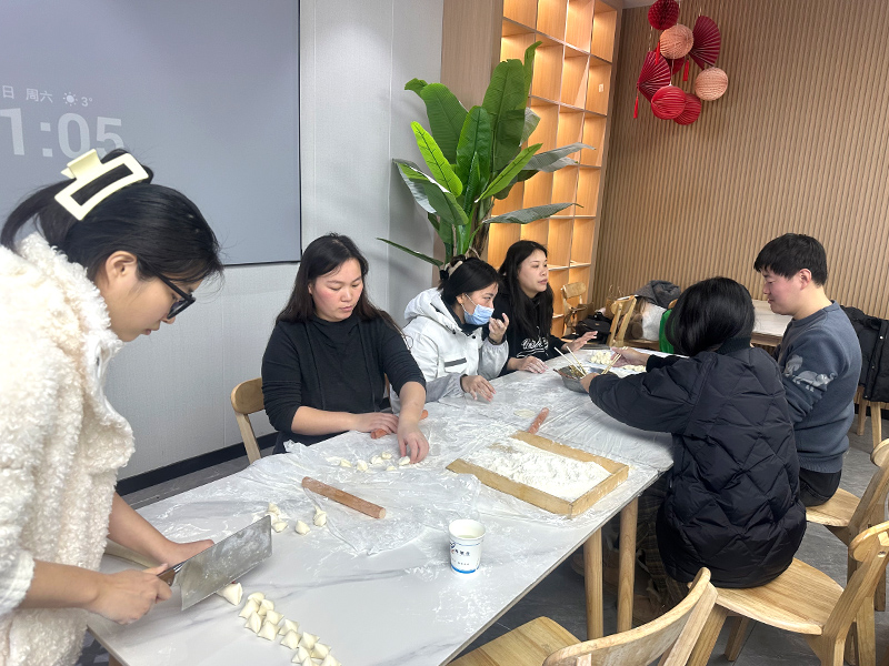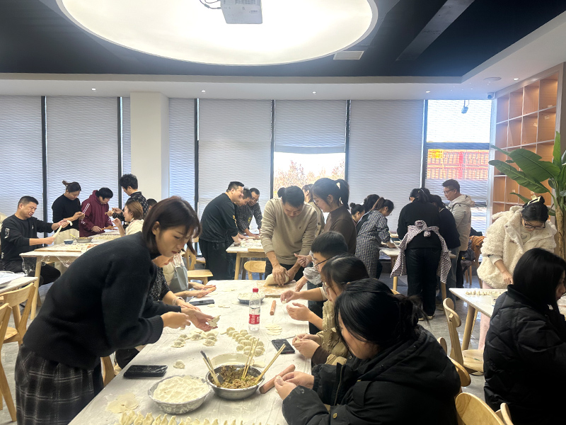 活動于冬至日上午8點準時開始,公司食堂內已布置得當,面粉、餃子餡、調料早已就位,空氣中彌漫著濃濃的節日氣息。來自不同部門、不同崗位的員工們齊聚一堂,大家臉上洋溢著期待與喜悅,準備共同迎接這一傳統佳節的到來。