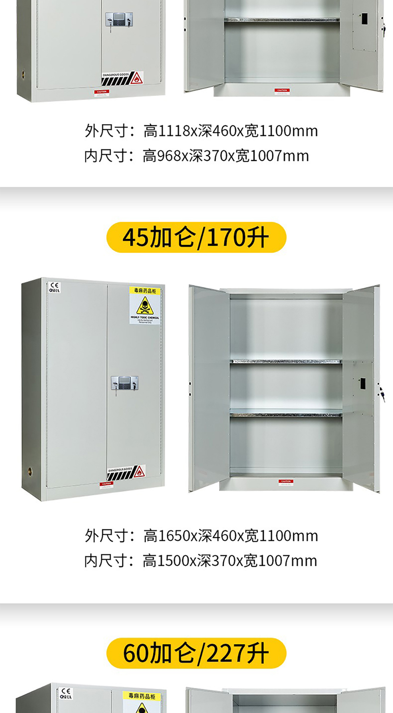 顏色:灰白色 規格:22加侖(高1650*深460*寬590)83L 用途:適用于存儲鴉片、海洛因、杜冷丁、甲基苯丙胺(冰毒)、大麻、可卡因等麻醉藥和毒品。